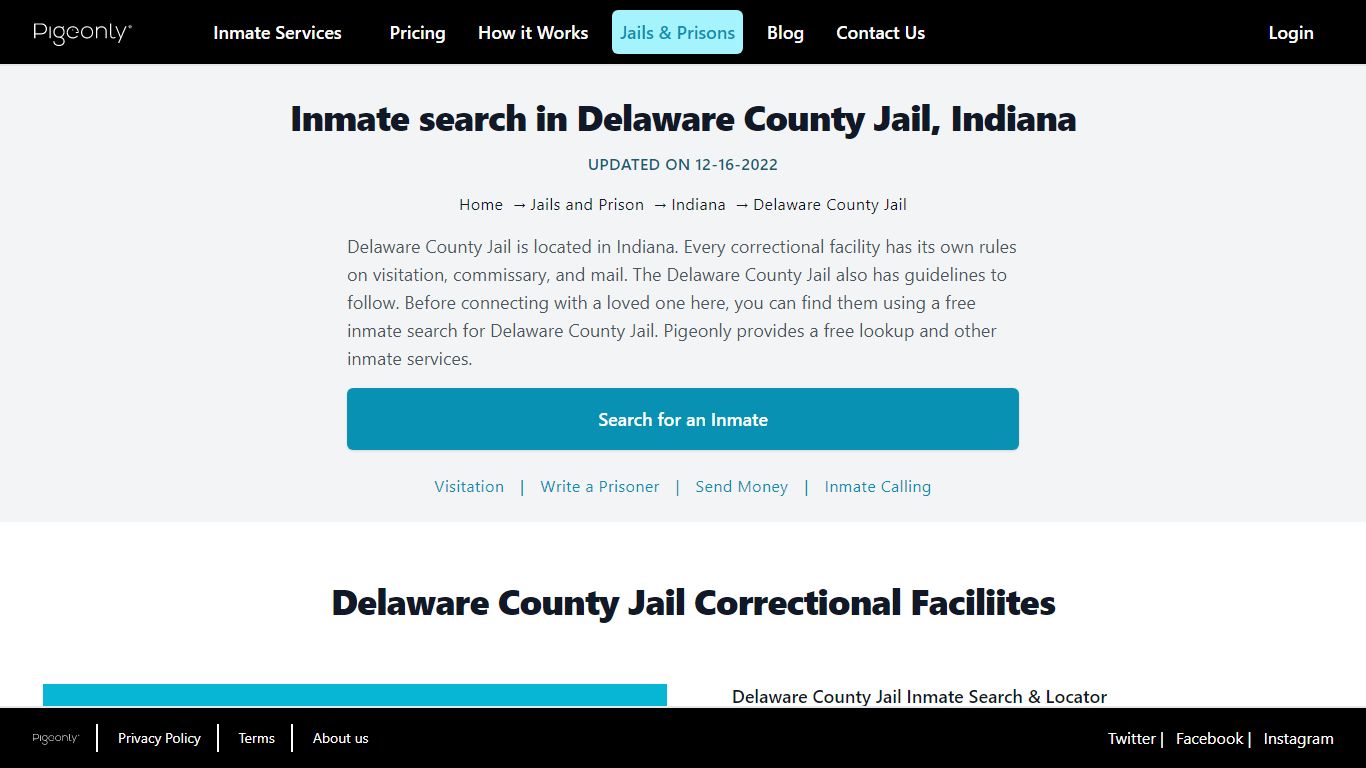 Inmate Search Delaware County Jail, Indiana | Pigeonly